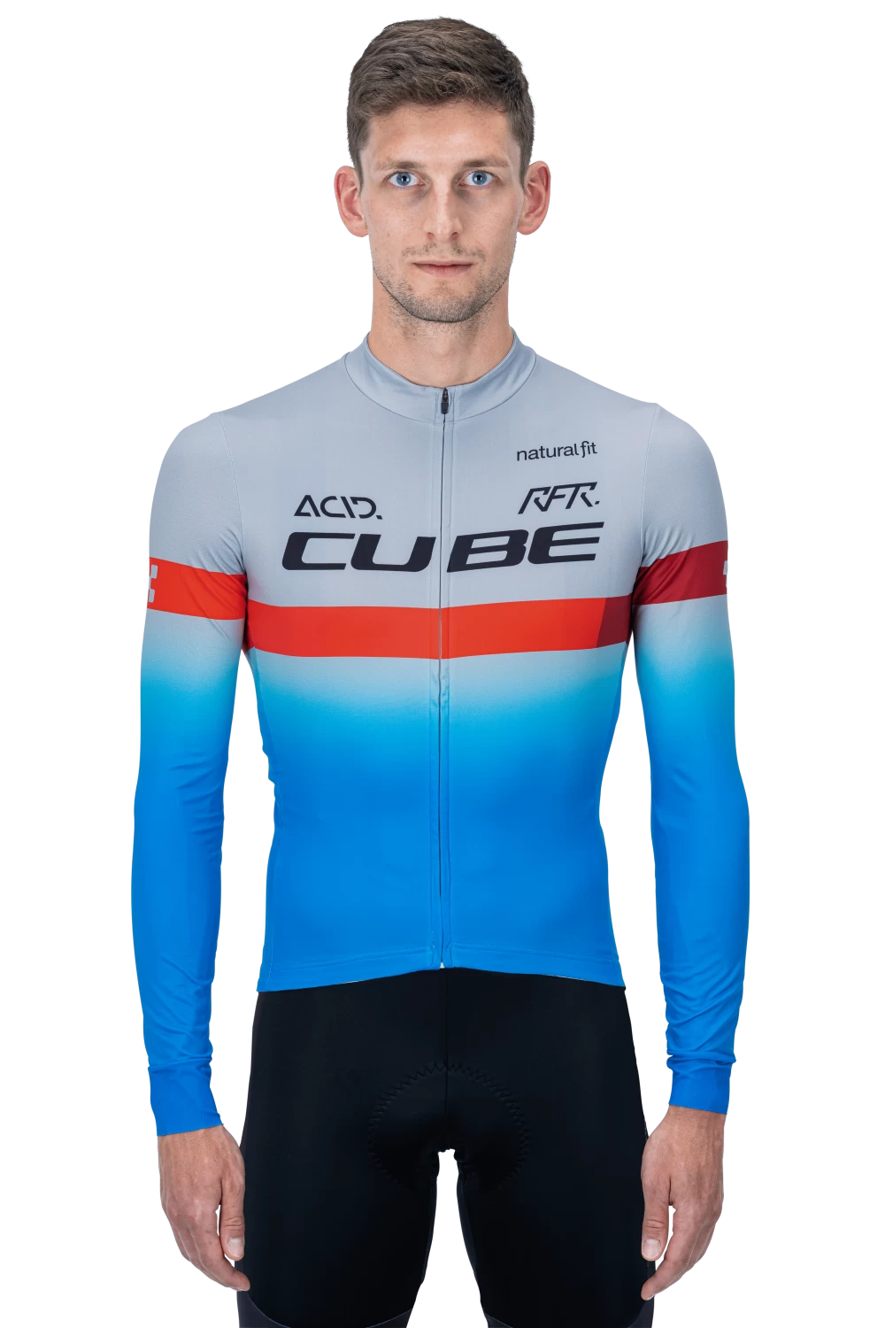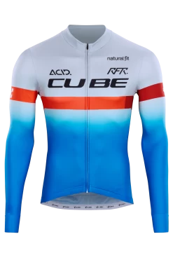 Slip on the CUBE TEAMLINE Jersey and enjoy the feeling of pure speed! The close-fitting design promises maximum aero gains whilst the soft hem with silicone gripper keeps everything right where it should be to leave you to focus on bettering your sprint speed. A full-length front zip delivers optimum ventilation on hot summer days and the water-repellent zip rear pocket keeps moisture away from your smartphone, keys and other essentials. And speaking of moisture: Not only is the fabric super durable, it’s quick drying too with reflective details for added safety. If that doesn’t get you pumped to ride, what will!?